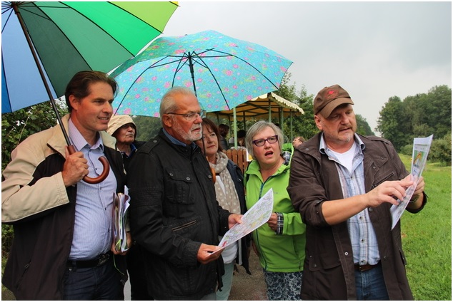 Die beiden SPD-Landtagskandidaten Dieter Stauber (Wahlkreis Bodensee) und Heike Engelhardt (Wahlkreis Ravensburg), Mitglieder der SPD-Kreistagsfraktion sowie der SPD-Gemeinderatsfraktion aus Meckenbeuren und des SPD-Ortsvorstands informierten sich am Donnerstagnachmittag über die geplante Trasse Korridor Mitte für die Linienführung der B30 zwischen Ravensburg-Unter eschach und Friedrichshafen. Organisiert hatten die zweistündige Kutschfahrt und den Spaziergang durch das möglicherweise betroffene zum Teil landwirtschaftlich genutzte, zum Teil naturnahe Wald- und Wiesen-Gebiet bei Brugg das Aktionsbündnis gegen den B30-Korridor Mitte.